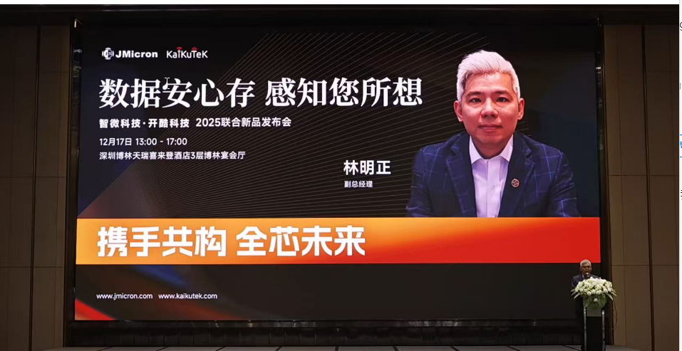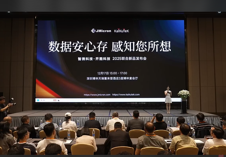 JMicron Technology Corp., a Taiwan-based fabless IC design company, together with its wholly owned subsidiary KaiKuTek Inc., showcased new product solutions at a joint product launch event held on December 17, 2025, at the Bolin Tianrui Sheraton Hotel in Shenzhen. The event highlighted ultra-fast storage bridge chip solutions and next-generation millimeter-wave intelligent sensing technologies for customers and media.